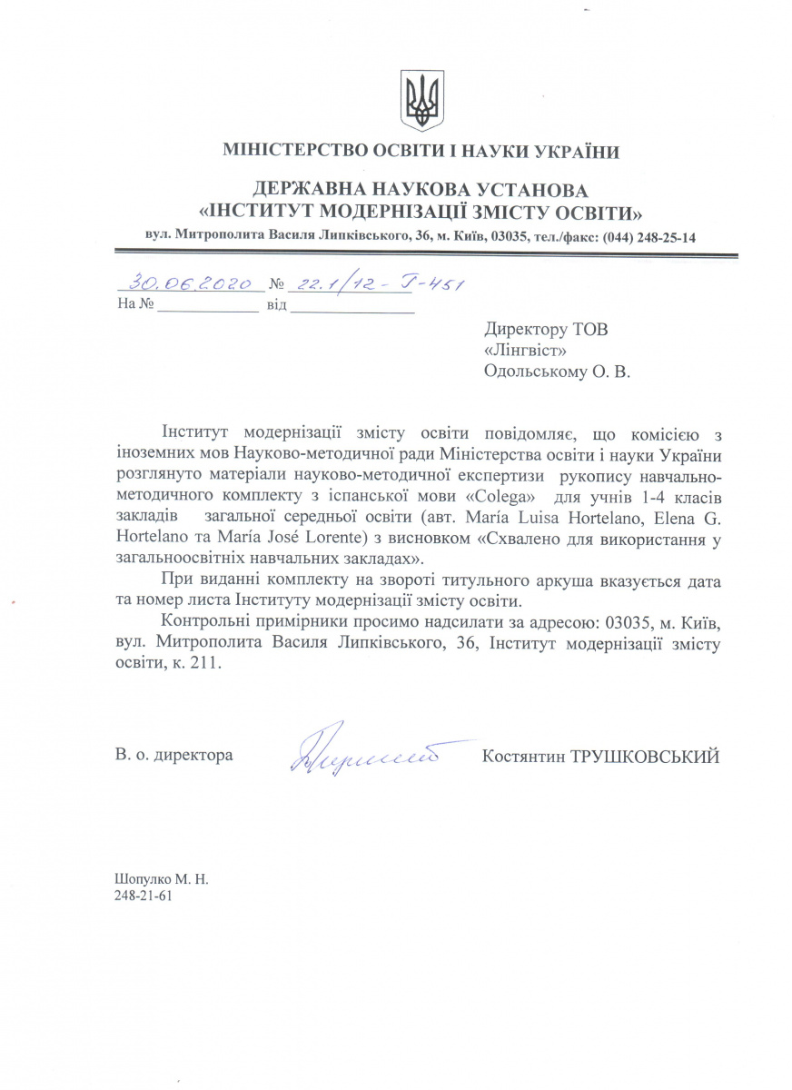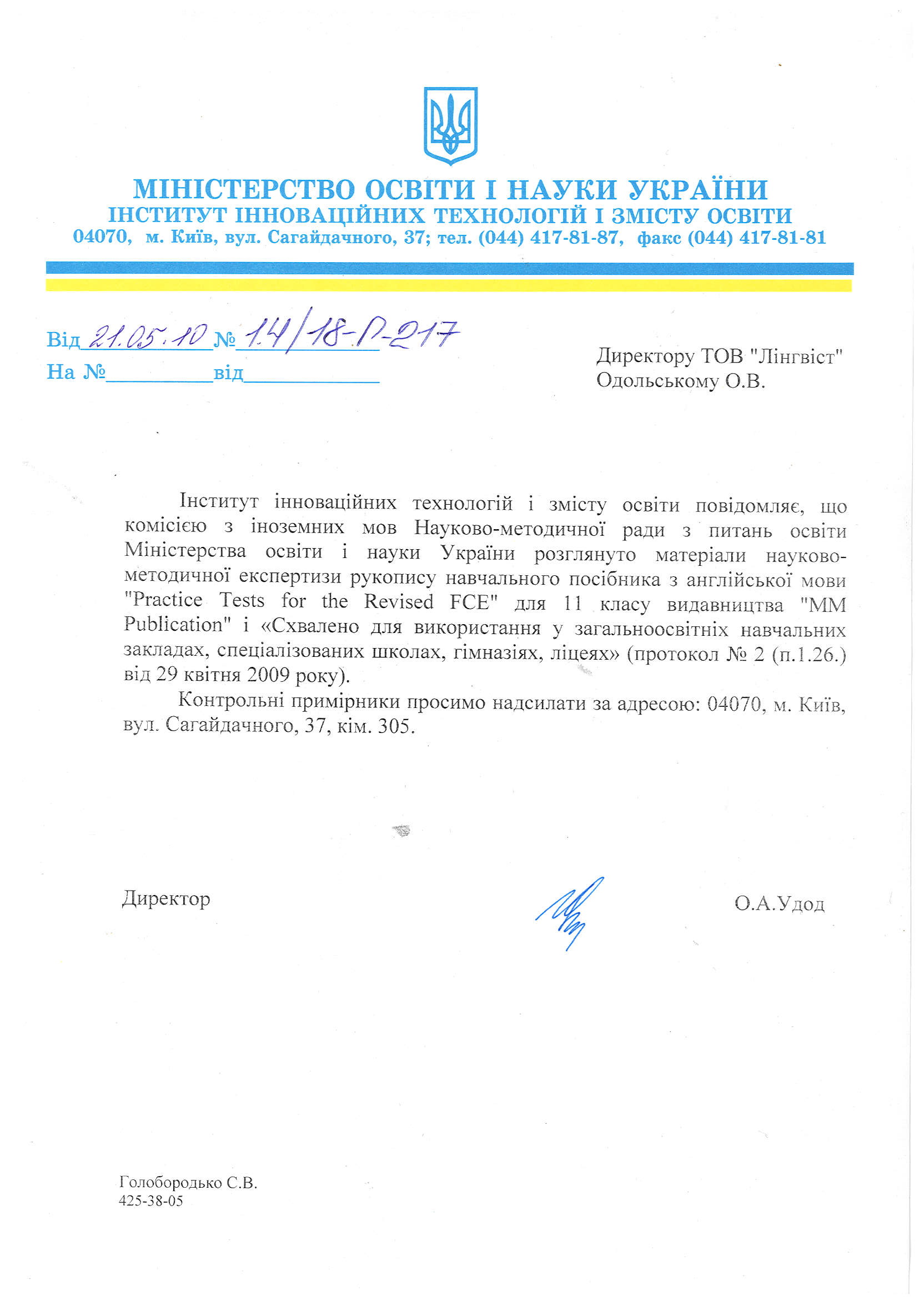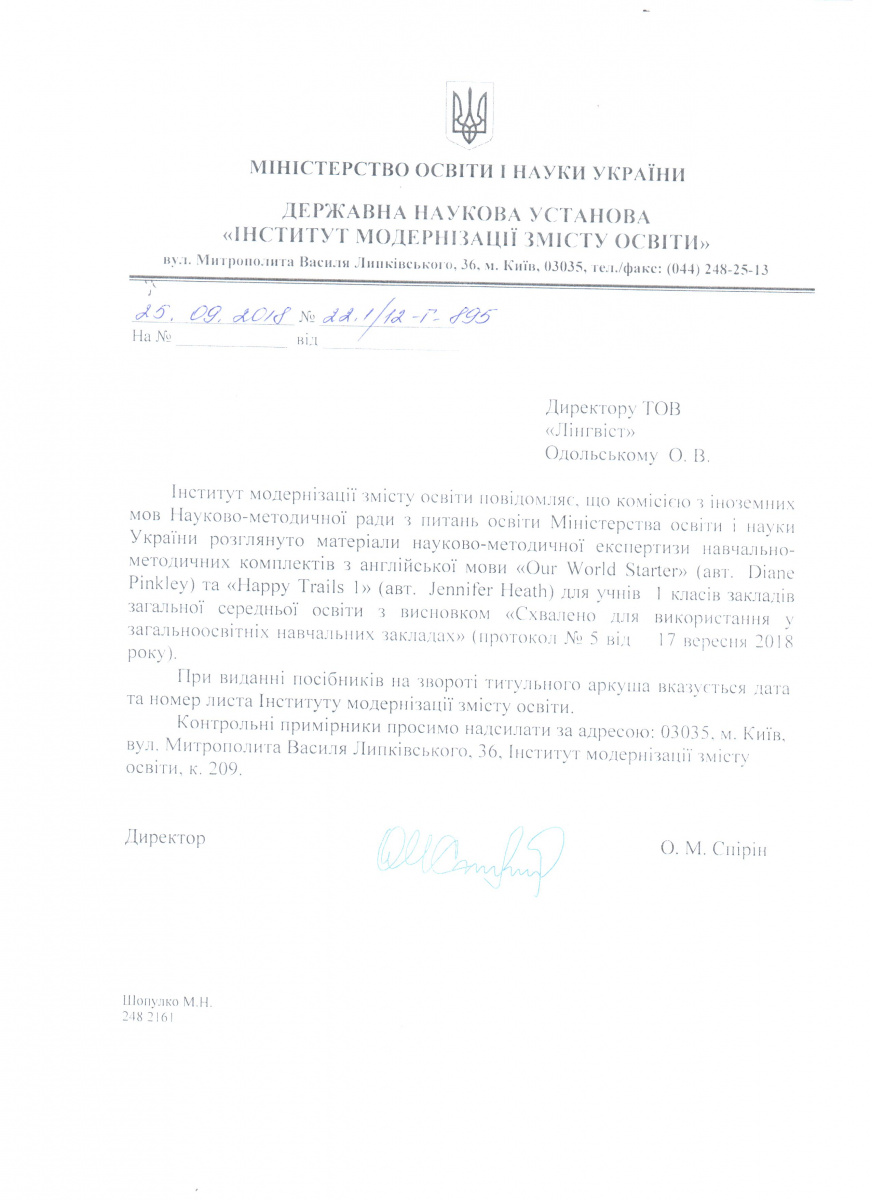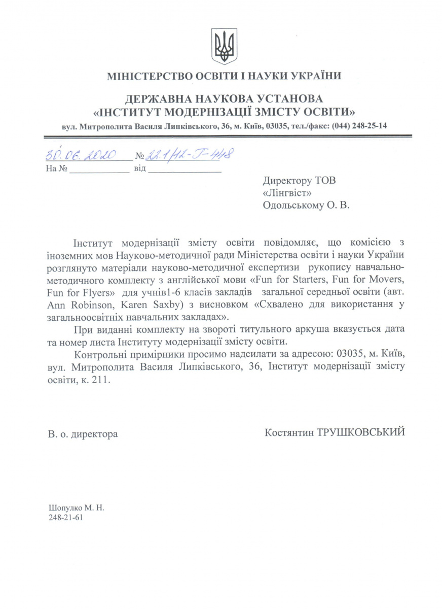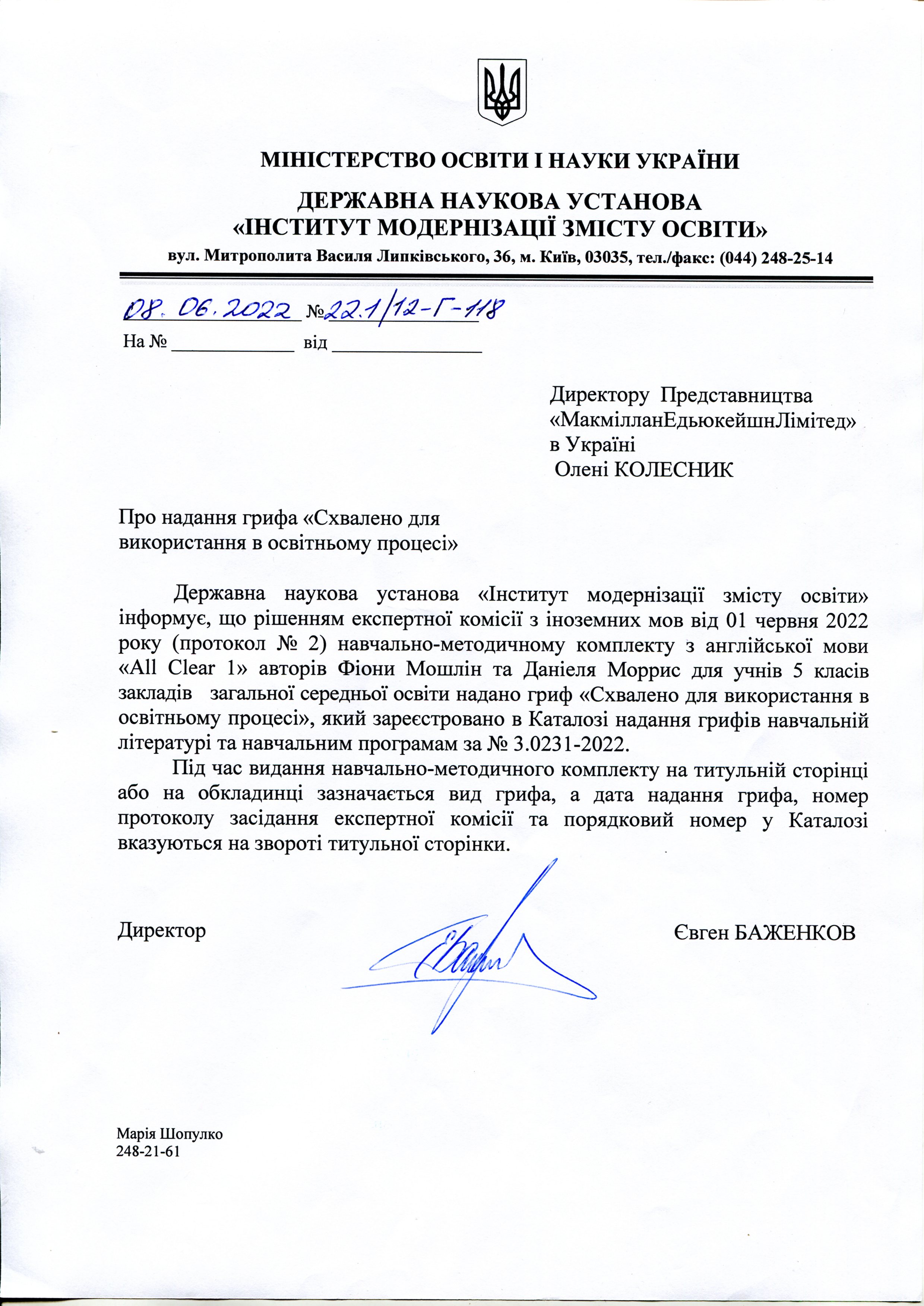 Тут можна завантажити листи Міністерства освіти і науки України з рекомендаціями щодо використання підручників в загальноосвітніх та спеціалізованих школах. Гриф міністерства видається на п'ять років і дійсний протягом цього терміну.