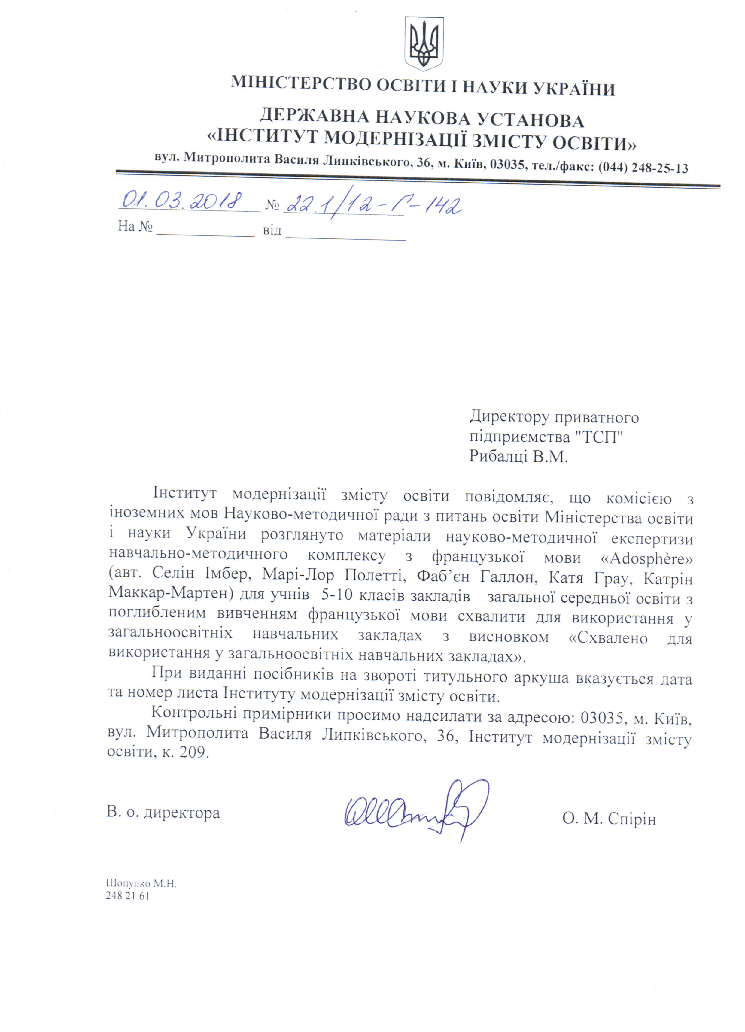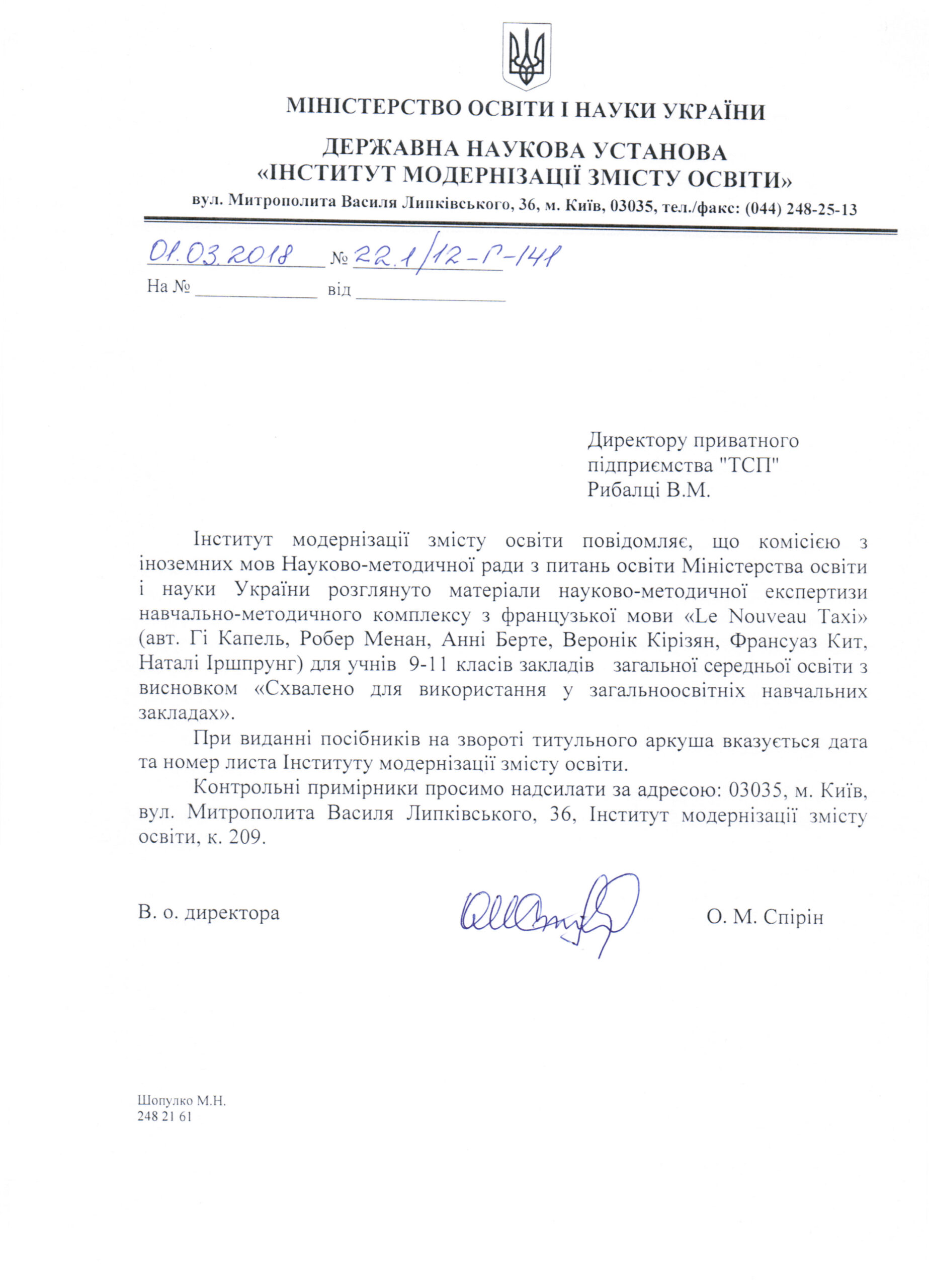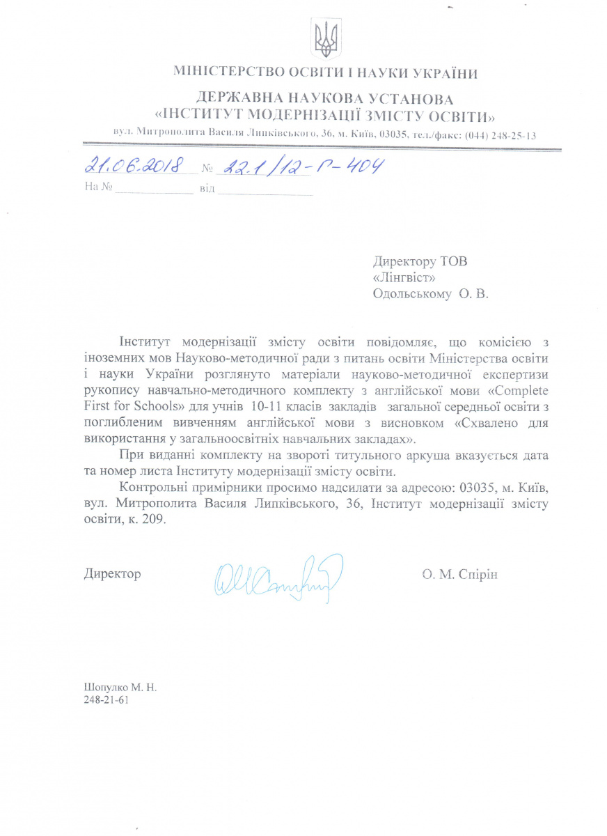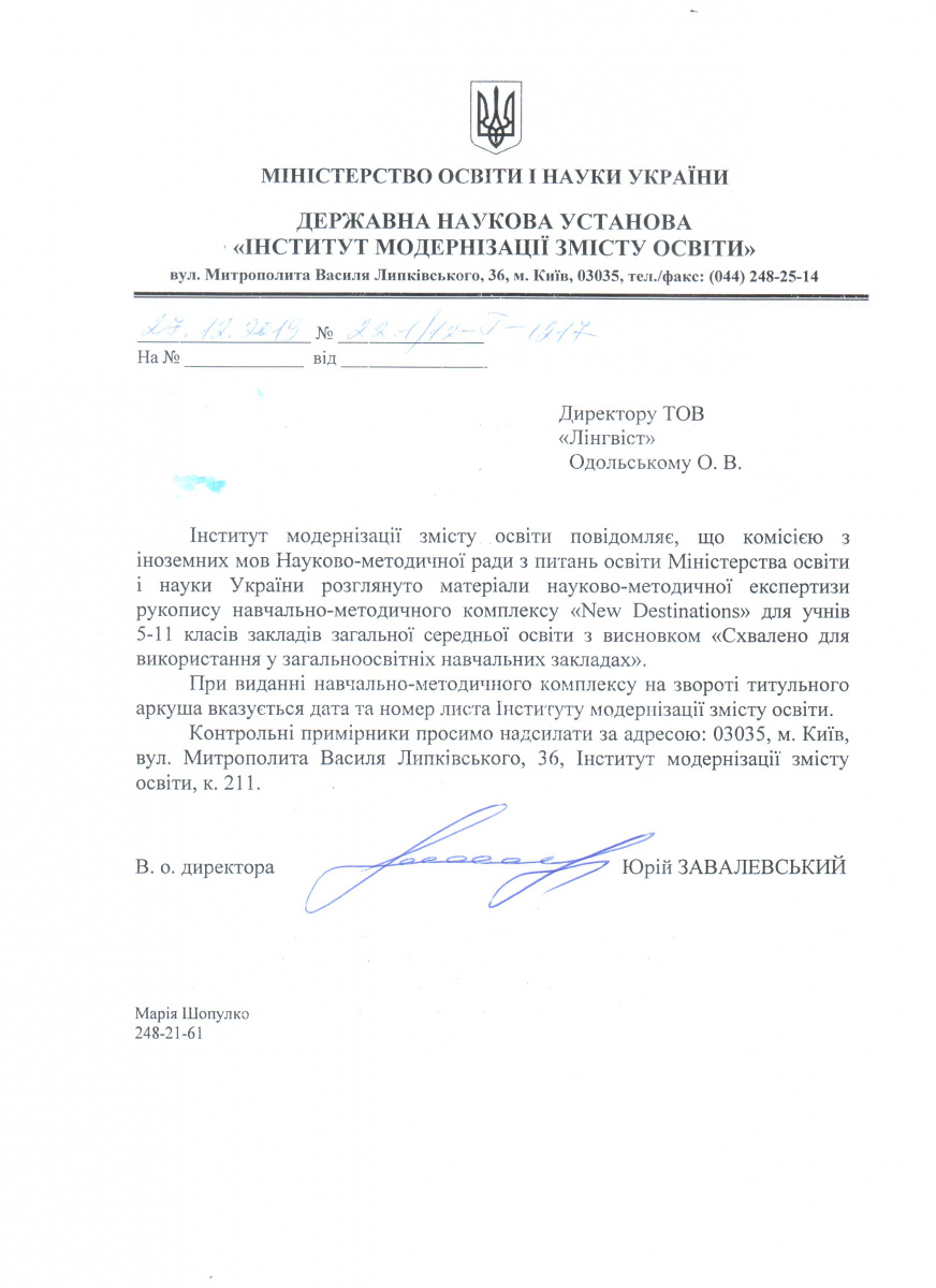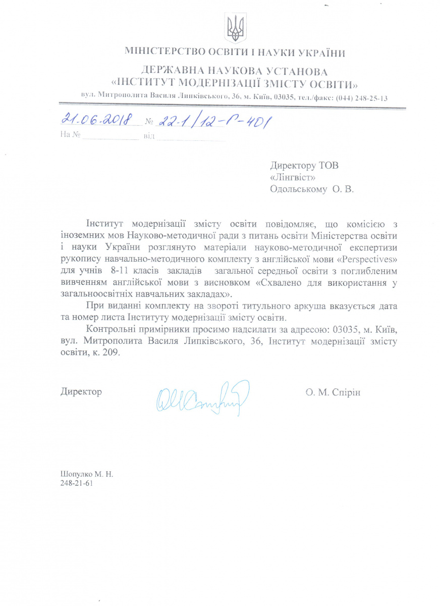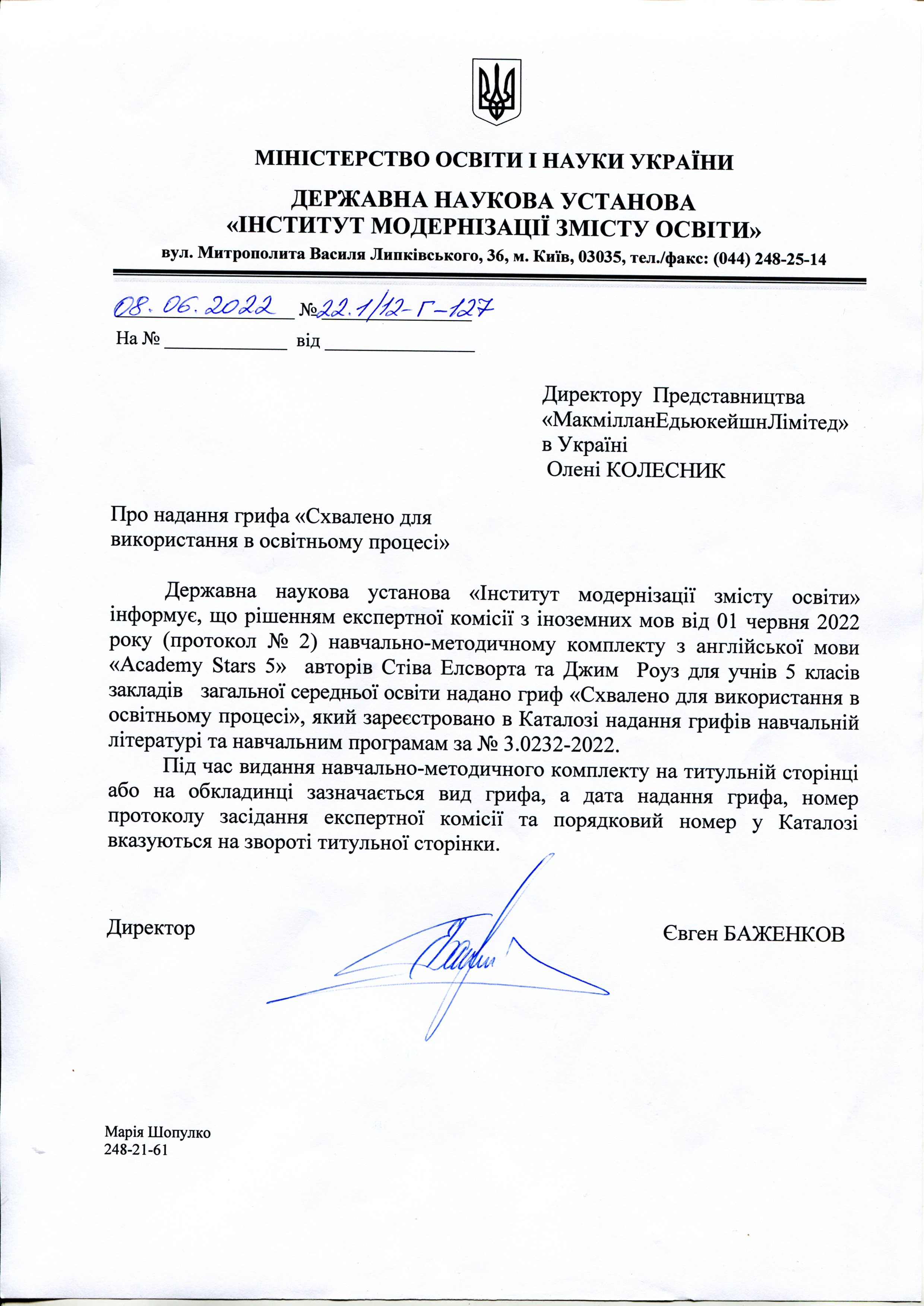 Тут можна завантажити листи Міністерства освіти і науки України з рекомендаціями щодо використання підручників в загальноосвітніх та спеціалізованих школах. Гриф міністерства видається на п'ять років і дійсний протягом цього терміну.